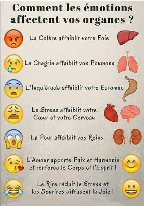 Nos émotions peuvent influencer le fonctionnement de nos organes.