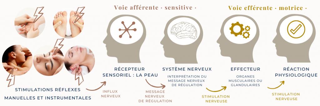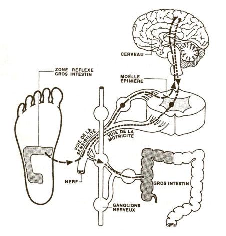 Le mécanisme d’action de la réflexologie a un lien étroit entre stimulation réflexe et le système nerveux.
