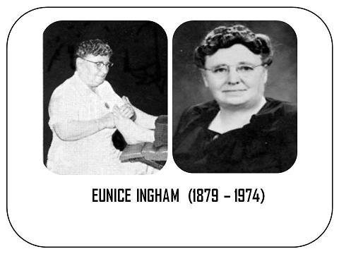 Eunice Ingham, kinésithérapeute consacra en 1926 ses recherches au développement des théories du Dr William Fitzgerald, à l’élaboration des célèbres planches des zones réflexes sur les pieds et les mains.