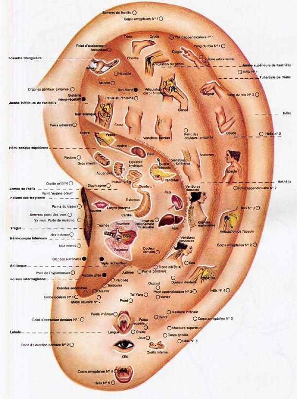 Carte de réflexologie de l’oreille :