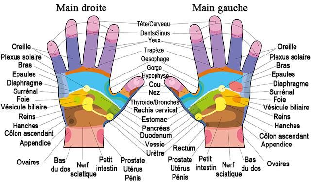 Carte de réflexologie des Mains :
