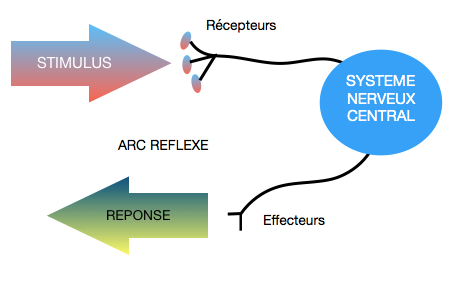 - Aux réflexes : des réponses physiologiques (motrices, viscérales ou glandulaires) qui succèdent à des stimuli sensitifs et sensoriels.