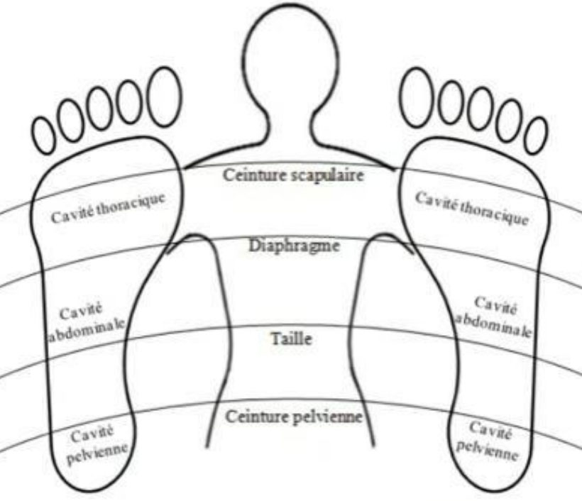 Pour localiser avec précision les différentes zones réflexes, on subdivise les pieds en une sorte de quadrillage de lignes imaginaires longitudinales et horizontales.